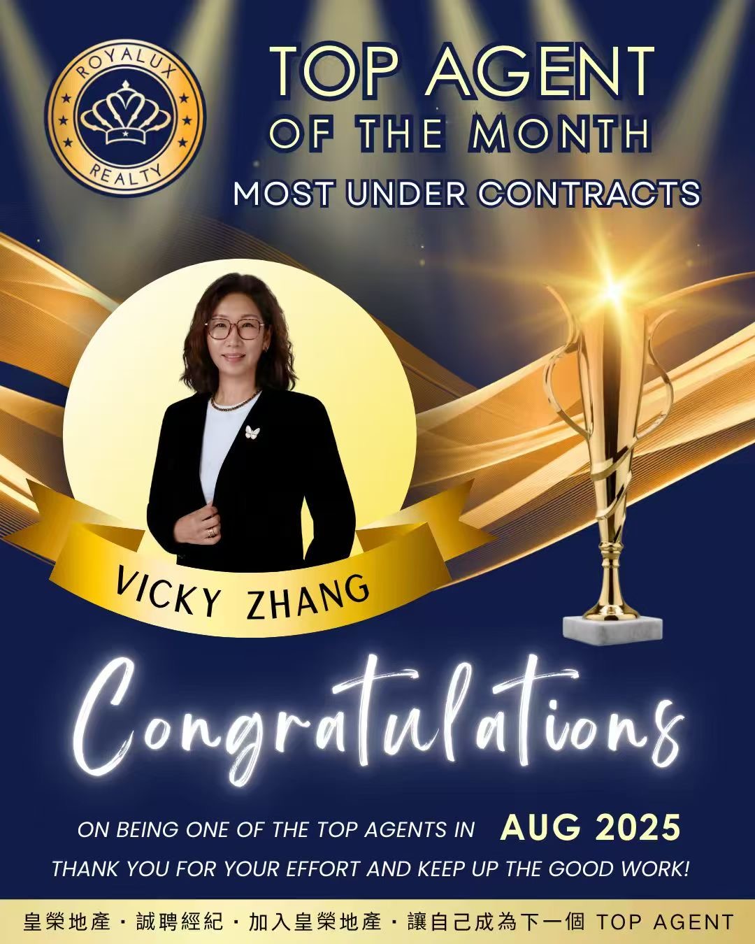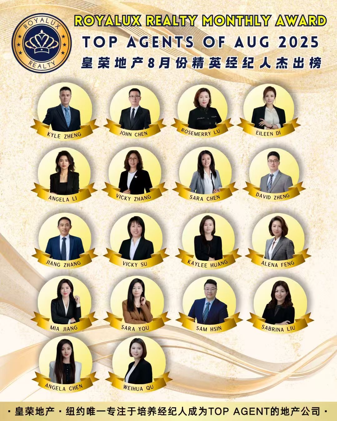 🌟 皇荣地产 8 月销售精英榜再创佳绩|纽约房产买卖专家 Vicky Zhang