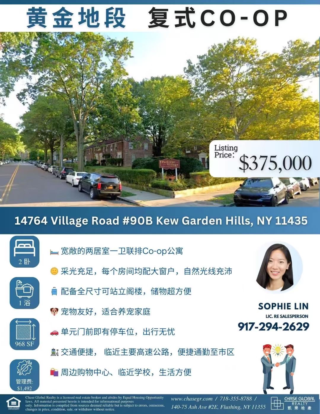 ☎ 联系方式:Sophie Lin 917-294-2629