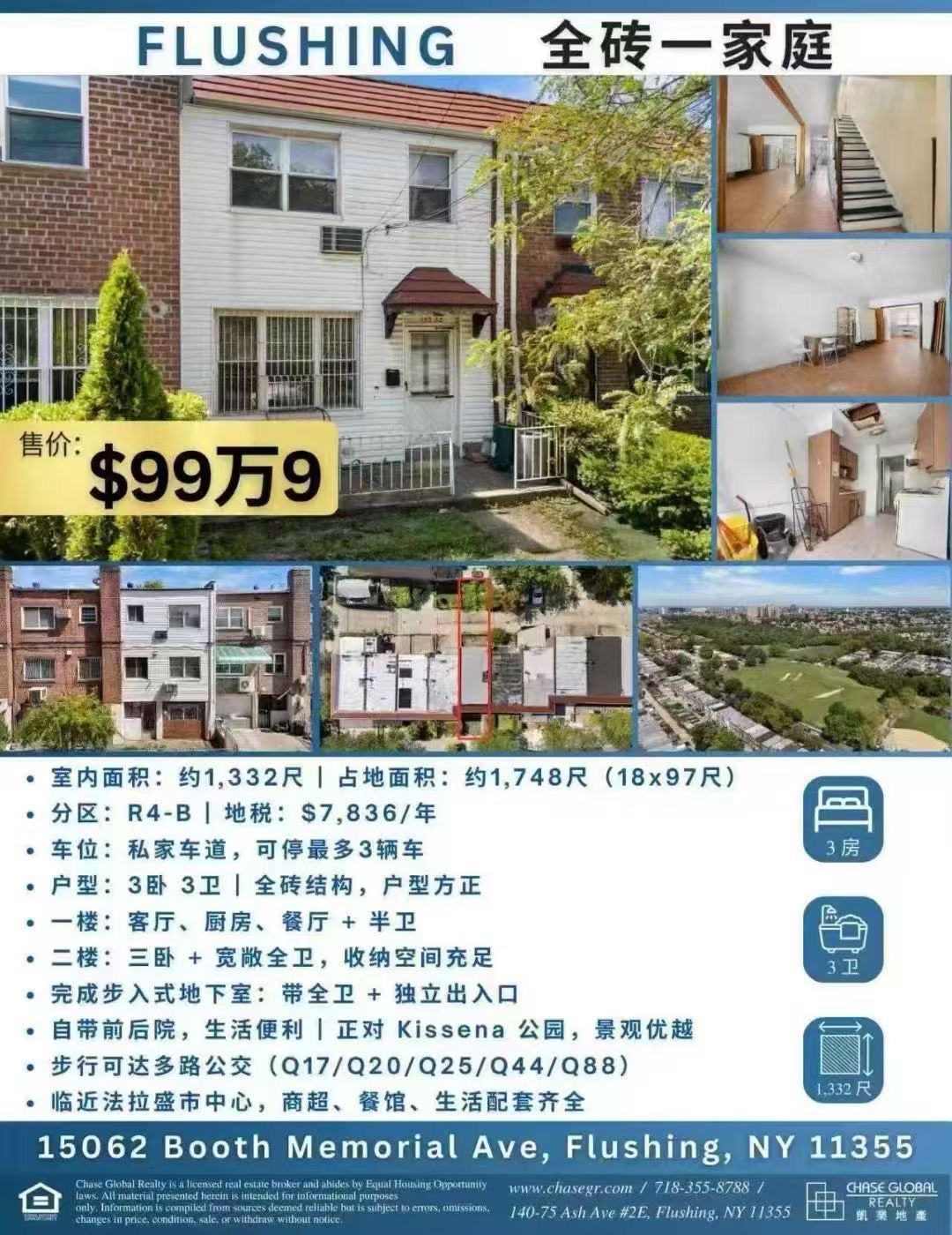 • 核心地段:法拉盛核心地段稀缺房源,增值潜力大,适合长期持有或短期出租收益。