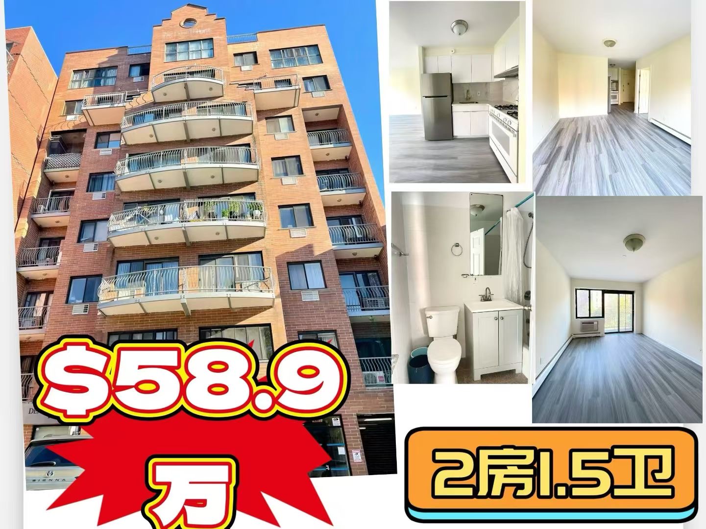 这套位于 法拉盛Roosevelt闹中取静区域 的精美Condo,朝南采光极佳,拥有双阳台与方正客厅,户型舒适实用,非常适合自住、投资或退休养老。总面积合理,设有 2房1厅1.5浴,让每位居住者都拥有充足私密空间。