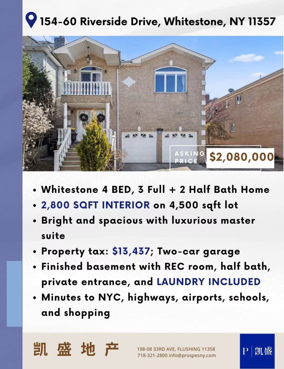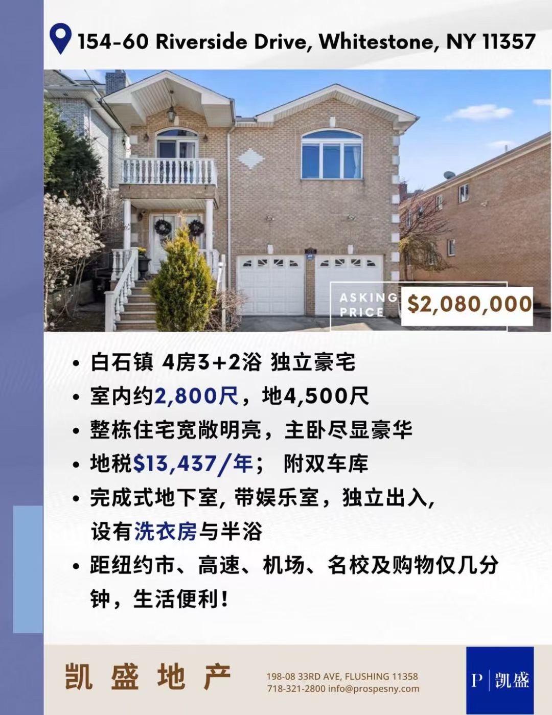 白石镇两家庭住宅出售 带车位车库 居住舒适白石镇合法双家庭出售📍 地址:154-60 Riverside Dr, Queens, Whitestone💰 叫价:$2,080,000