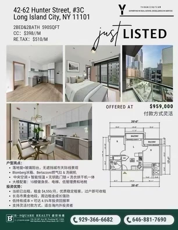 长岛市Hunters Point 2025年新建公寓隆重上市,核心地段,交通便利,生活配套完善。公寓低地税、管理费低,拥有高稳定租客,投资自住两相宜。户型设计合理,光线充足,空间实用。无论是投资收租还是自住居住,都可获得高性价比体验。房源数量有限,欢迎买家和经纪合作预约看房,享受专业贴心服务,抓住这一难得的购房与投资机会。