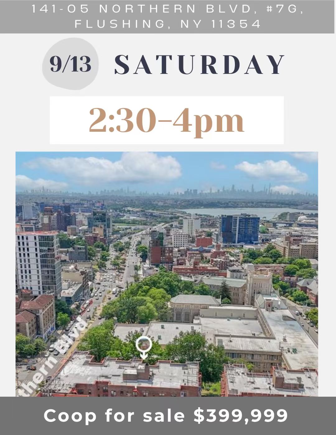 法拉盛核心地段高层2卧1卫Coop热销!911呎大户型,带阳台采光充足,管理费$1381/月全包(含暖气、燃气、水费、地税),自住或投资均宜。住满2年即可出租,宠物友好,电梯洗衣房便利。步行可至Q13/Q28/Q44公交线路,1英里到法拉盛主街,临近法拉盛高中、YMCA和高速。高性价比、稀缺户型,机会难得!