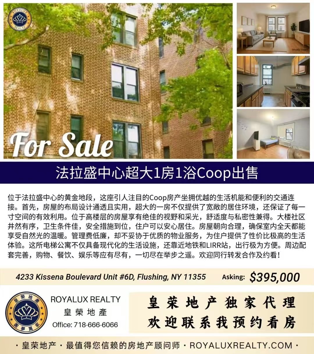 📍地址:4233 Kissena Boulevard Unit #6D, Flushing, NY 11355