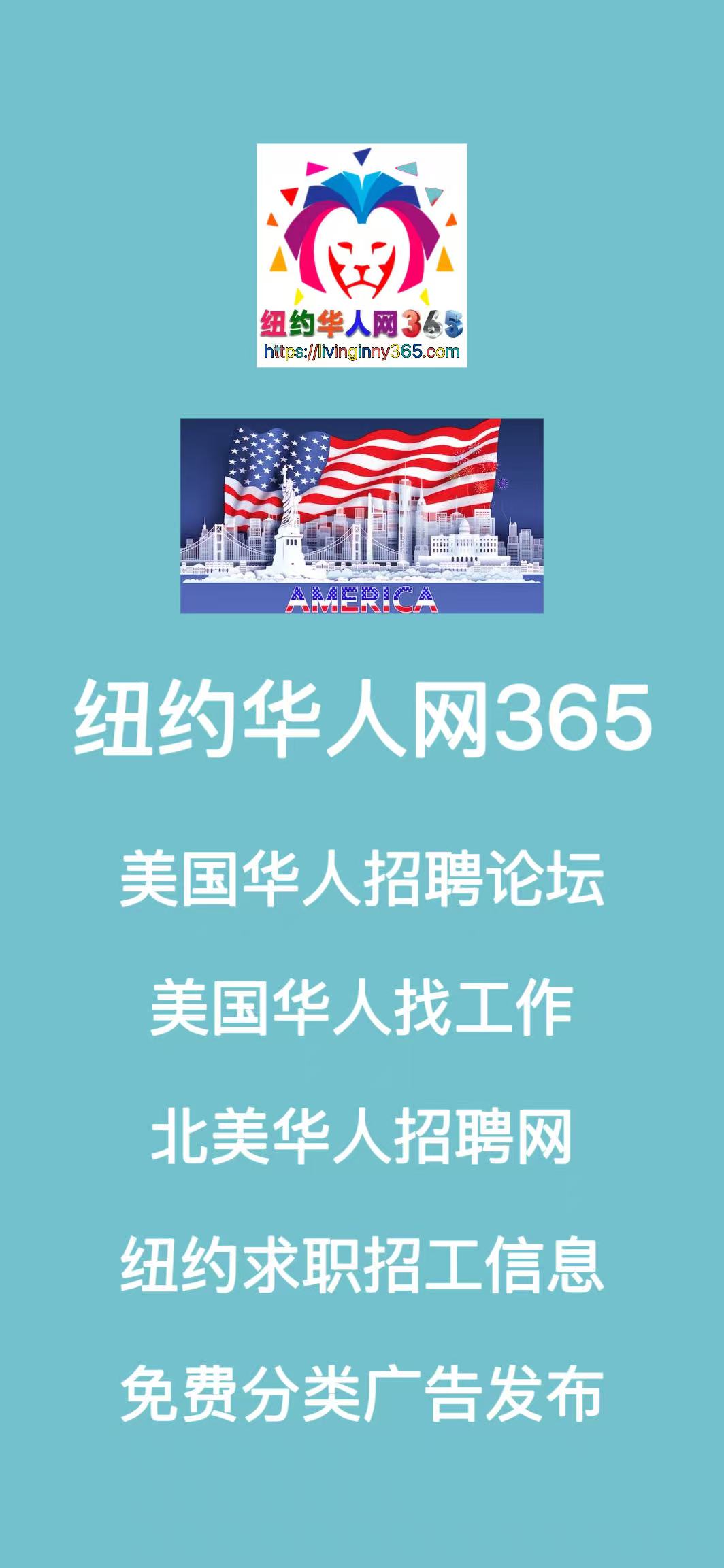 无需注册 立即上👉🏻纽约华人网365,免费发布招聘信息或浏览最新岗位,让您的求职或招聘效率翻倍。抓住机会,加入北美华人求职招聘网络,开启全新职业旅程!