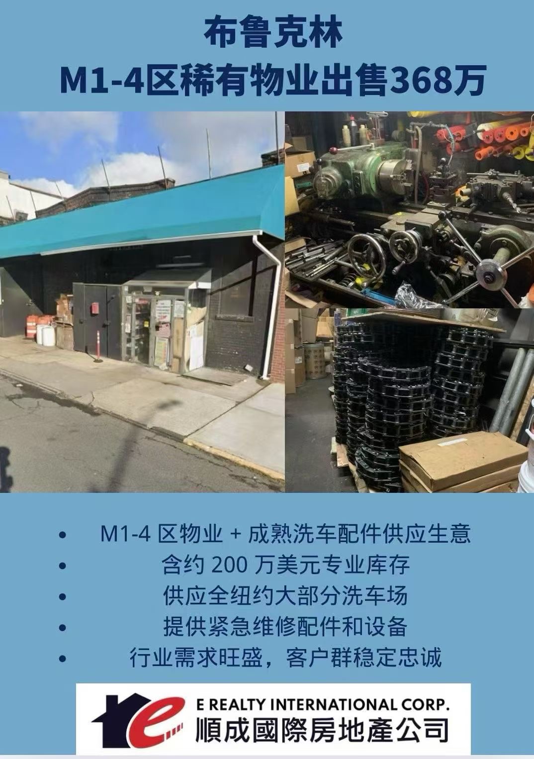 布鲁克林M1-4区物业出售,附带盈利中洗车配件供应生意,含约200万美金专业库存!客户覆盖全纽约洗车场,需求旺盛、现金流稳定。行业稀缺机会,投资自营两相宜!📍153 Snediker Ave, Brooklyn, NY 11207。☎929-569-7105