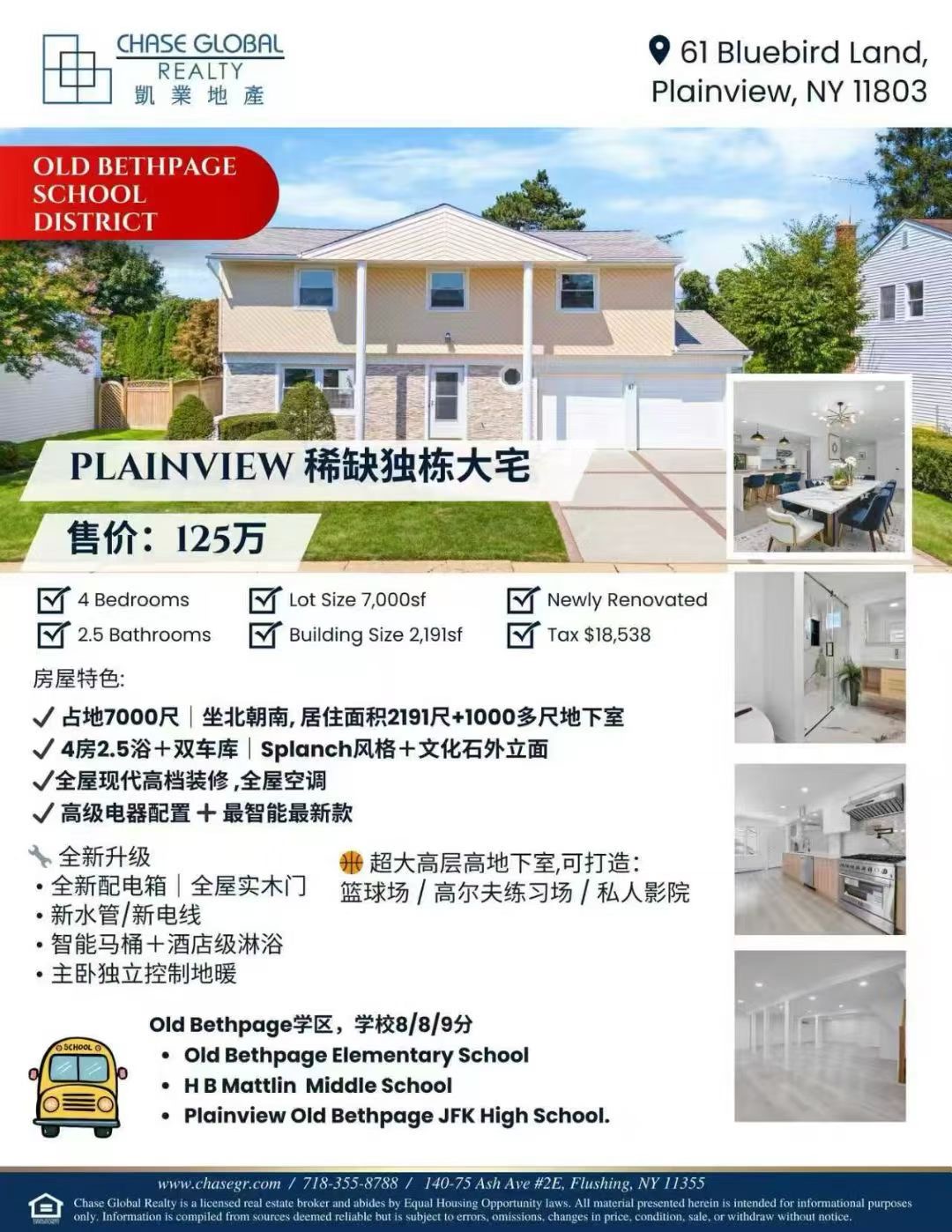 • 地址:61 Bluebird Land, Plainview, NY 11803
