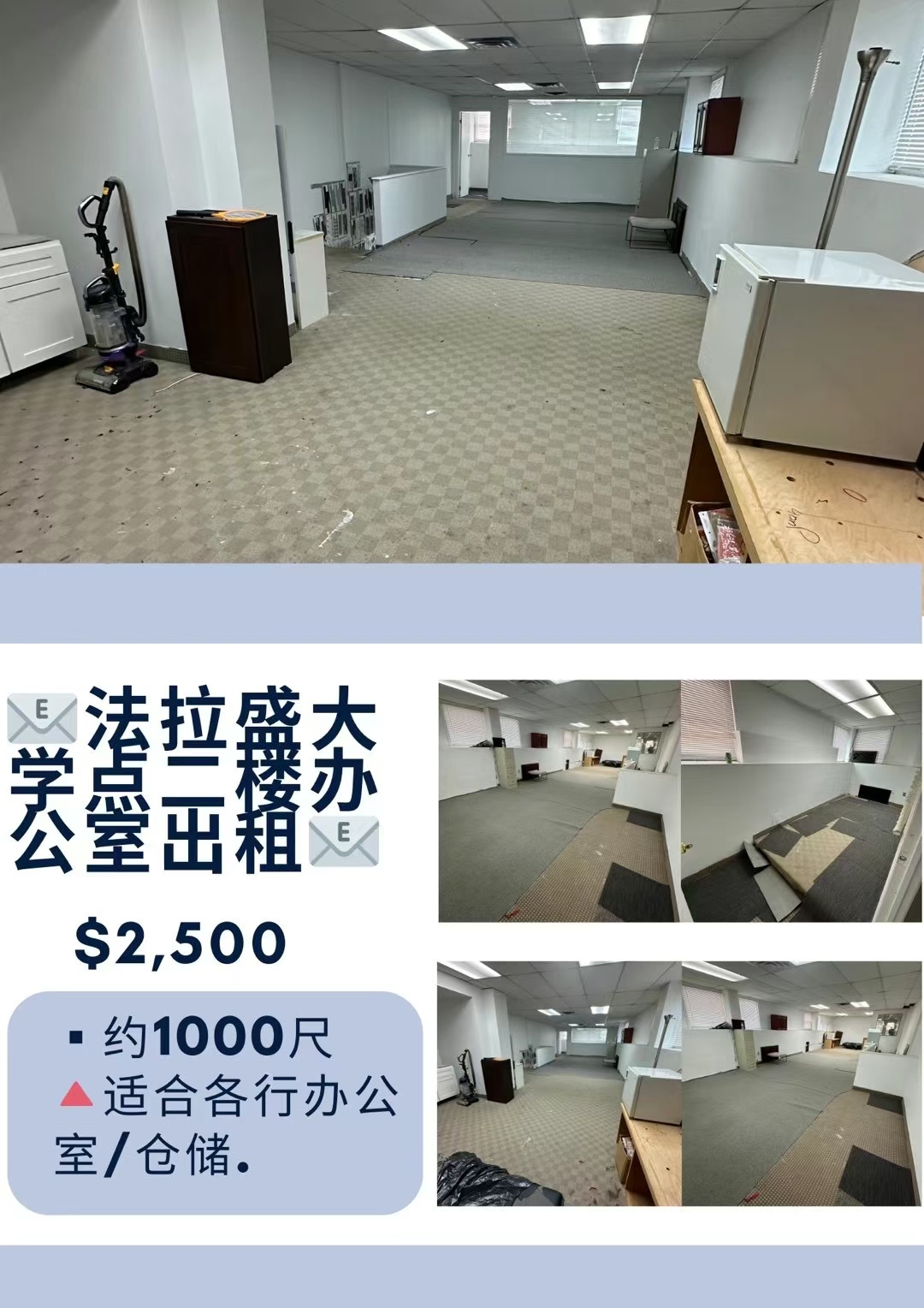 纽约法拉盛大学点核心地段稀缺二楼办公室出租,面积1000尺,月租$2500,性价比极高!临主街黄金地段,曝光率高,一楼为橱柜瓷砖建材店,稳定客流。二楼空间方正,适合办公室、工作室、仓储或各类商用。地址:36-01A College Point Blvd, Flushing,正常营业中,需预约看店。A+ Team独家代理,欢迎经纪合作,机会难得!