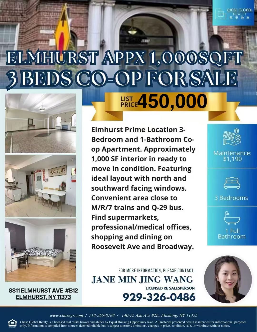 Elmhurst Coop出售 | 2楼3房1厅1卫 | 不查收入 | 拎包入住 | 近7号地铁
