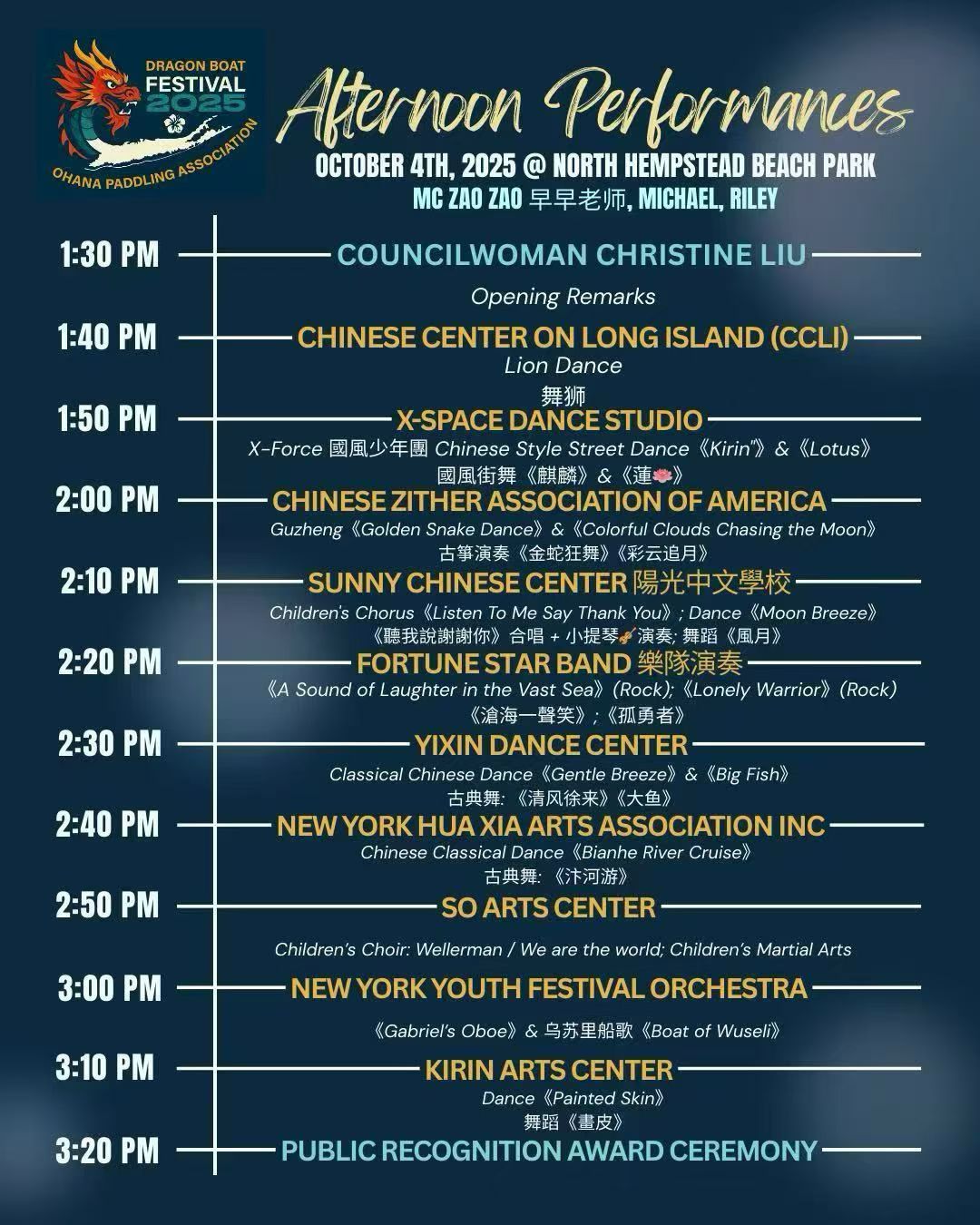 总结来说,长岛首届龙舟节及灯会不仅是一场精彩纷呈的体育赛事,更是一场文化盛宴和家庭团聚的好机会。10月4日,Port Washington North Hempstead Beach Park,全家老小共度中秋佳节,不容错过!