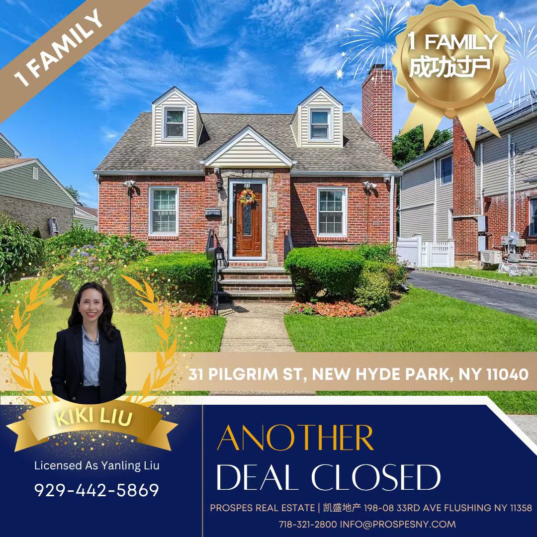 帮助他独家代理位于New Hyde Park的1套House,Kiki认真负责,专业可靠,顺利过户!