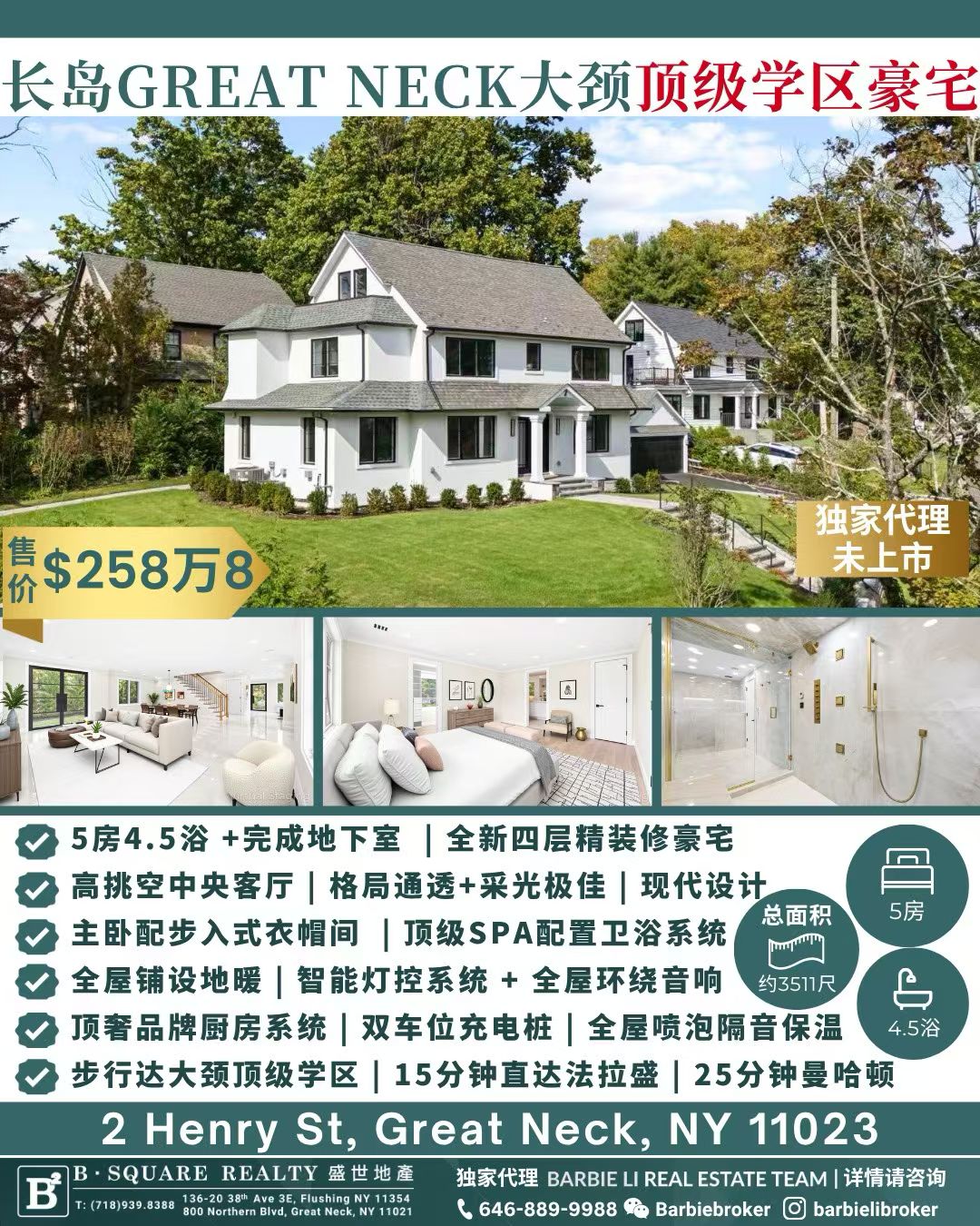 💎 步行可达顶级Great Neck North 学区|火车15分钟达法拉盛,25分钟曼哈顿