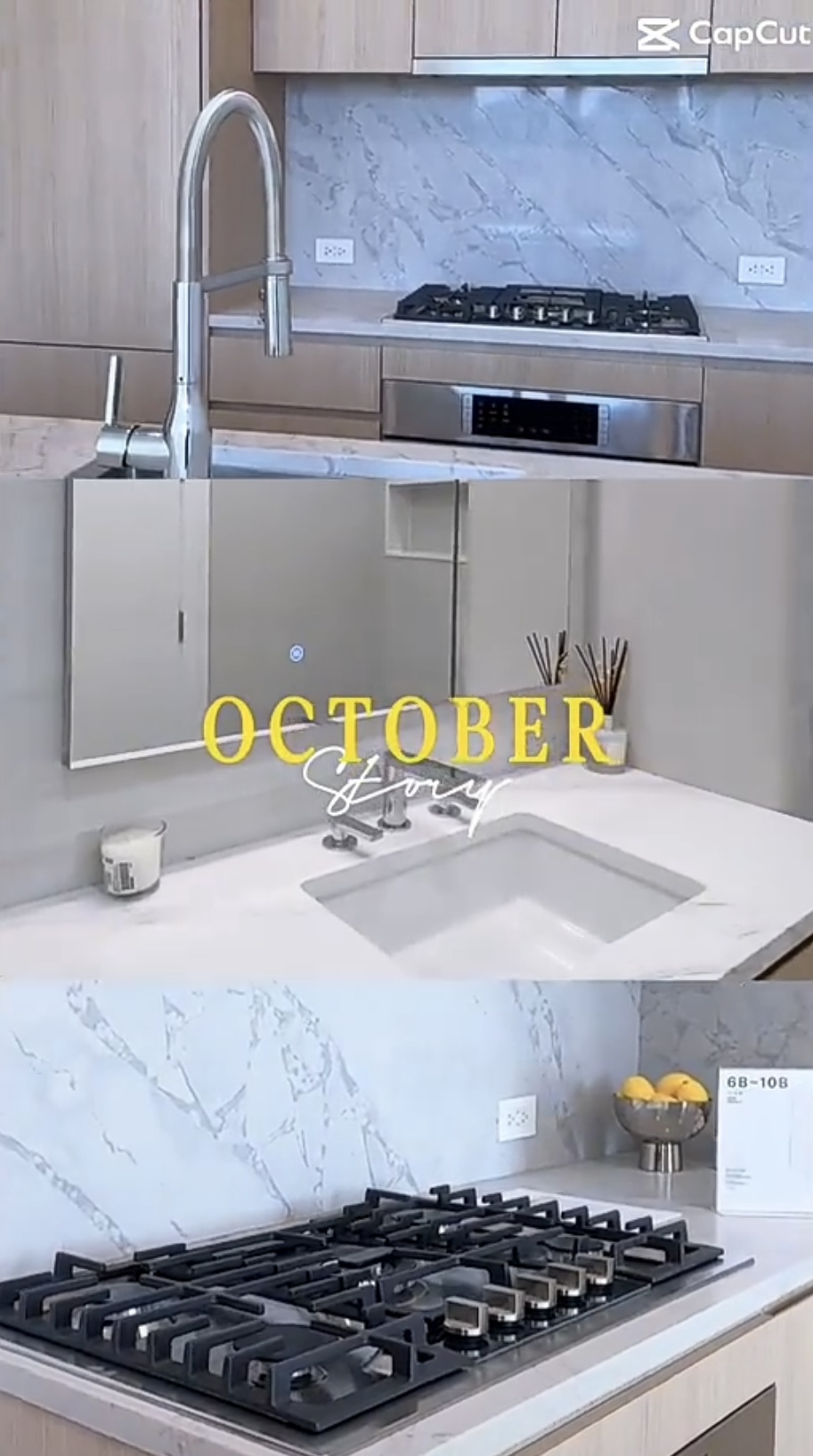✅ 石英石台面+防溅板,厨房洁净耐用