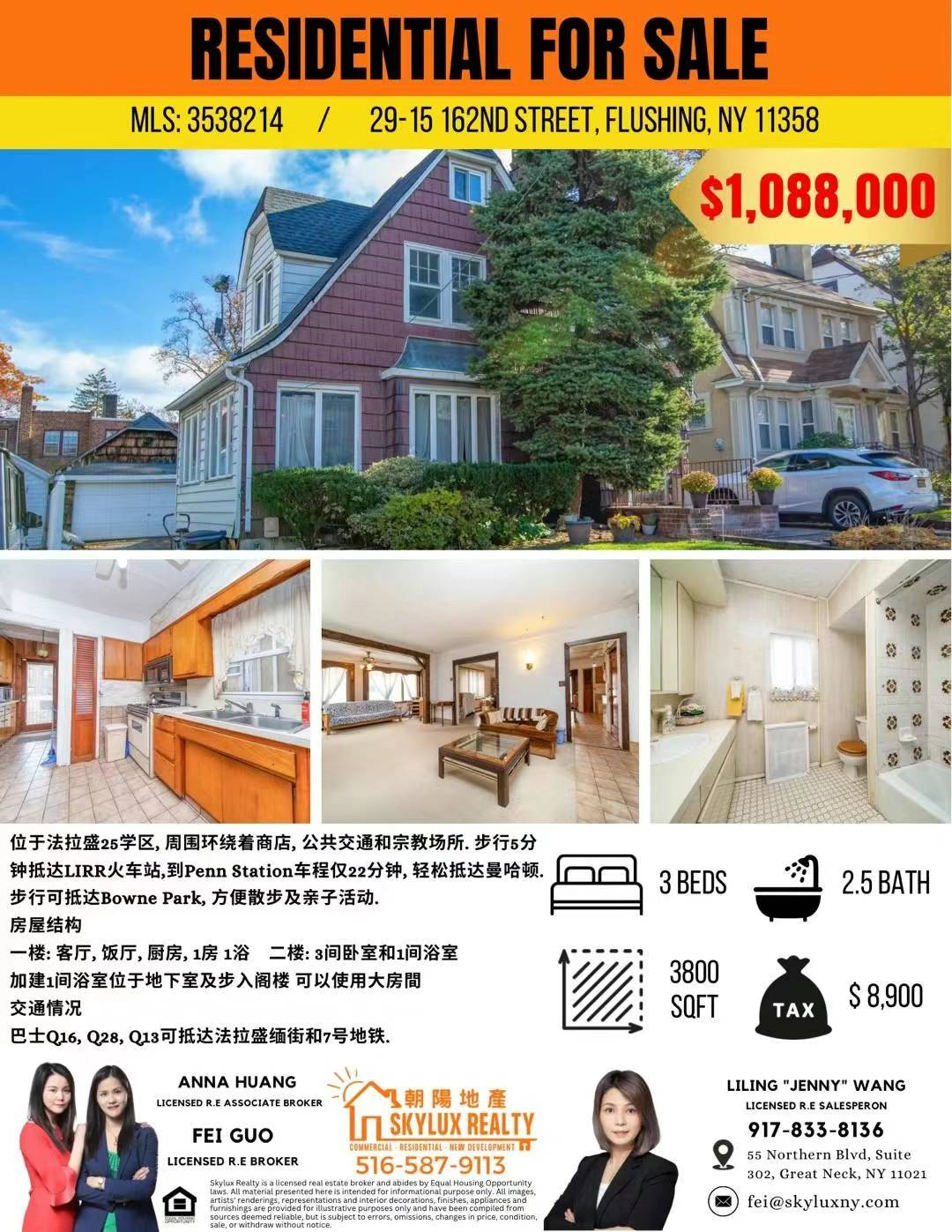 位于法拉盛25学区, 周围环绕着商店, 公共交通和宗教场所. LIRR仅有5个街区之遥,到Penn Station车程仅22分钟, 轻松抵达曼哈顿.步行可抵达Bowne Park, 方便散步及亲子活动.