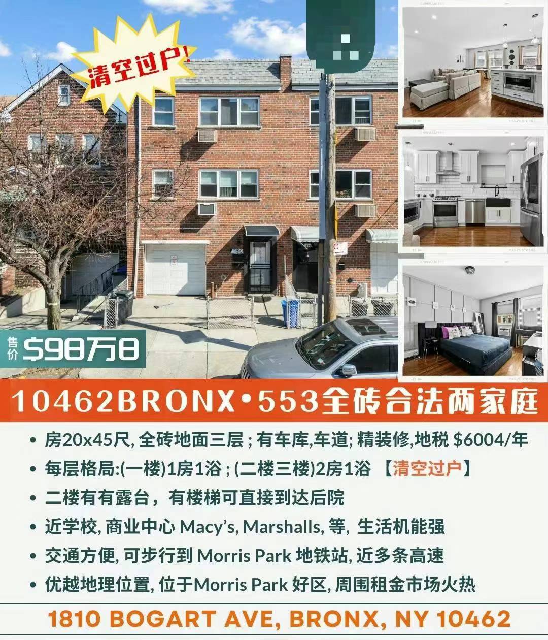 ✅优越地理位置,位于Morris Park 好区,周围租金市场火热