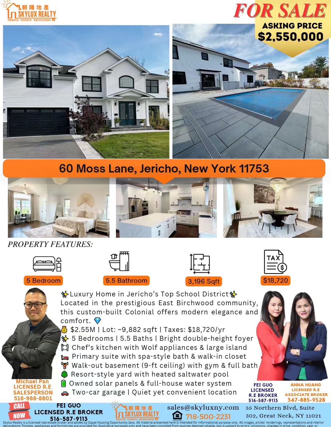 长岛房子出售,长岛豪华一家庭 位于著名Jericho頂級學區 年轻全新建成的 特别定制豪华殖民地风格,坐落在宁静优雅的 East Birchwood 社区。$255萬