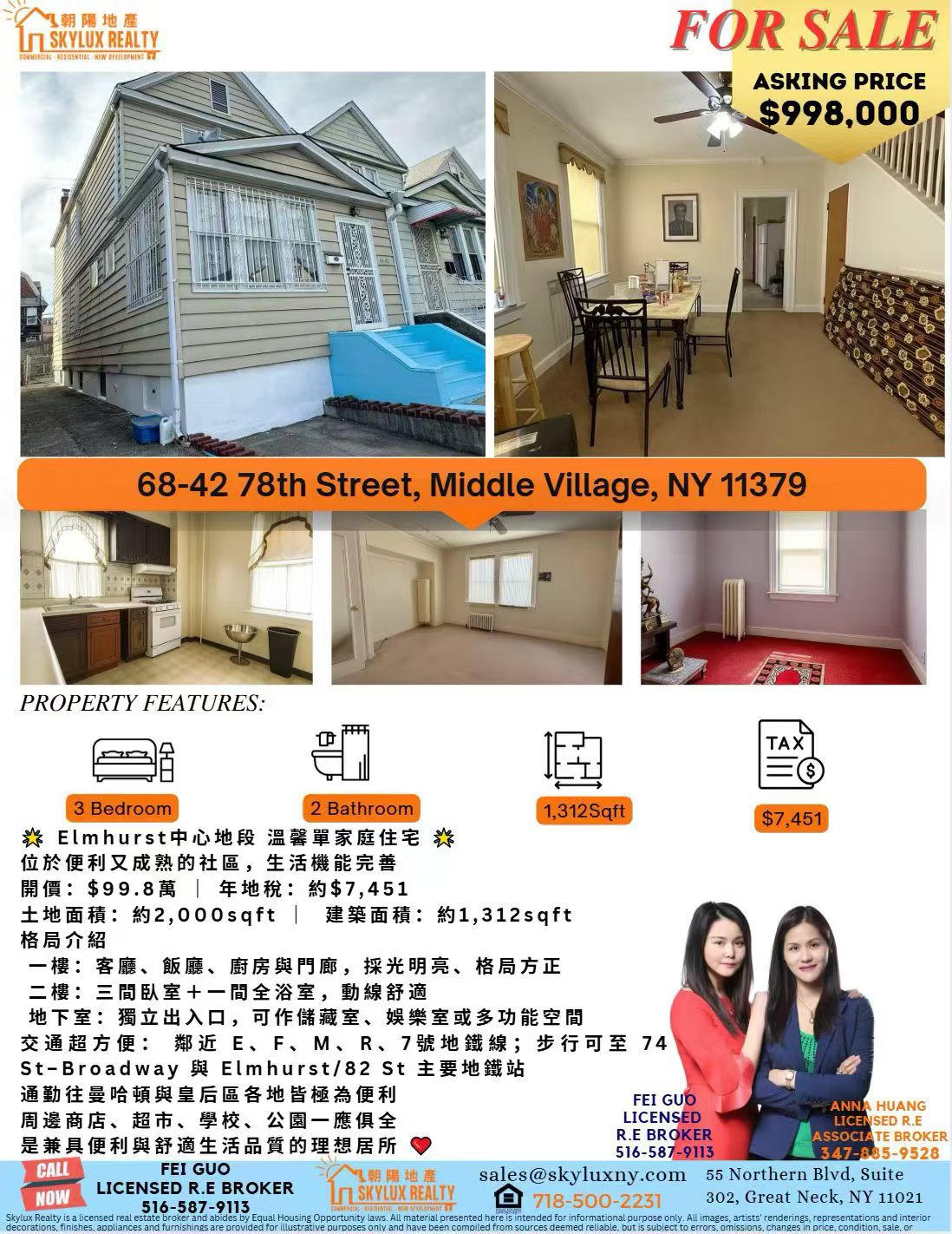 艾姆赫斯特核心地段温馨单家庭住宅出售,全方位解析 Elmhurst 购房指南,在纽约寻找理想家园的最佳选择。Elmhurst 核心地段单家庭住宅出售,建筑面积 1,312 平方英尺,土地 2,000 平方英尺,地下室独立出入口,适合家庭自住或出租投资。邻近多条地铁线路(E/F/M/R/7),生活机能完善,周边商店、超市、学校、公园齐全。地税 $7,451/年,开价 $998,000,机会难得!