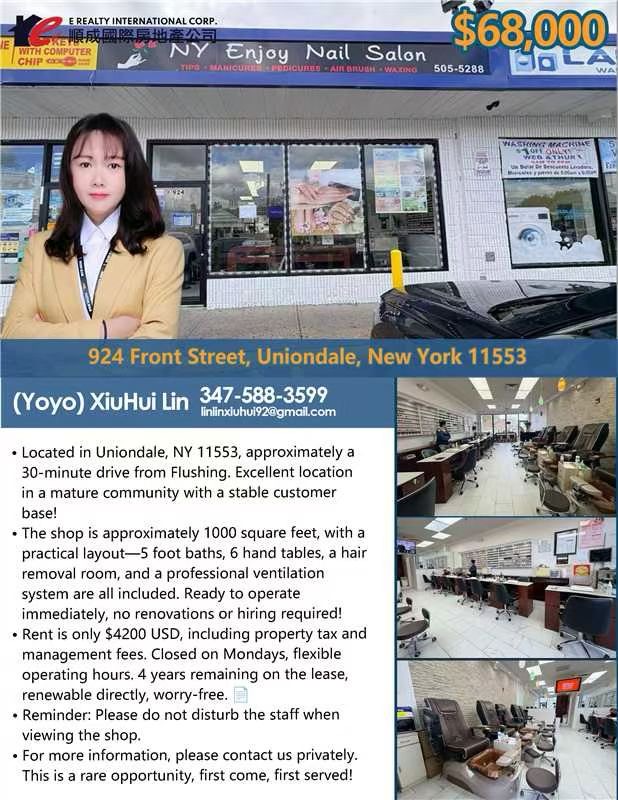 🔥 低成本创业机会|屋主急售 长岛38出口盈利美甲店 $68,000