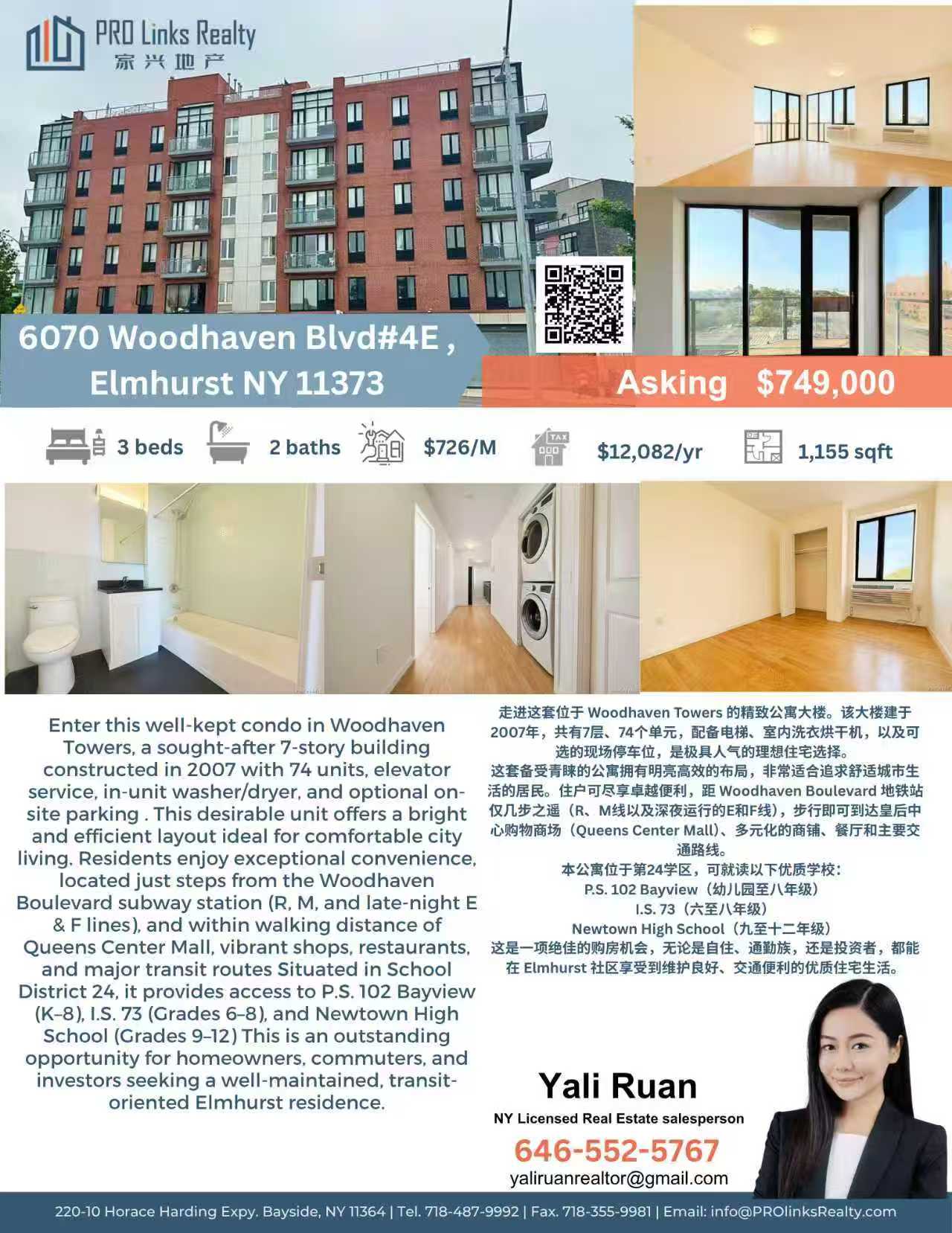 艾姆赫斯特康斗出售,走进这套位于 Woodhaven Towers 的精致公寓大楼。该大楼建于2007年,共有7层、74个单元,配备电梯、室内洗衣烘干机,以及可选的现场停车位,是极具人气的理想住宅选择。这套备受青睐的公寓拥有明亮高效的布局,非常适合追求舒适城市生活的居民。住户可尽享卓越便利,距 Woodhaven Boulevard 地铁站仅几步之遥(R、M线以及深夜运行的E和F线),步行即可到达皇后中心购物商场(Queens Center Mall)、多元化的商铺、餐厅和主要交通路线。
