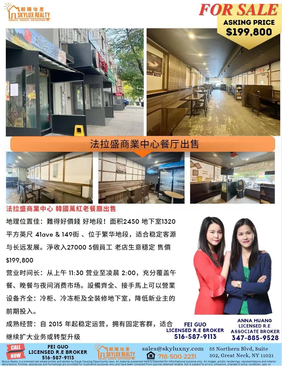 新上市 法拉盛商業中心 韓國萬紅老餐廳出售