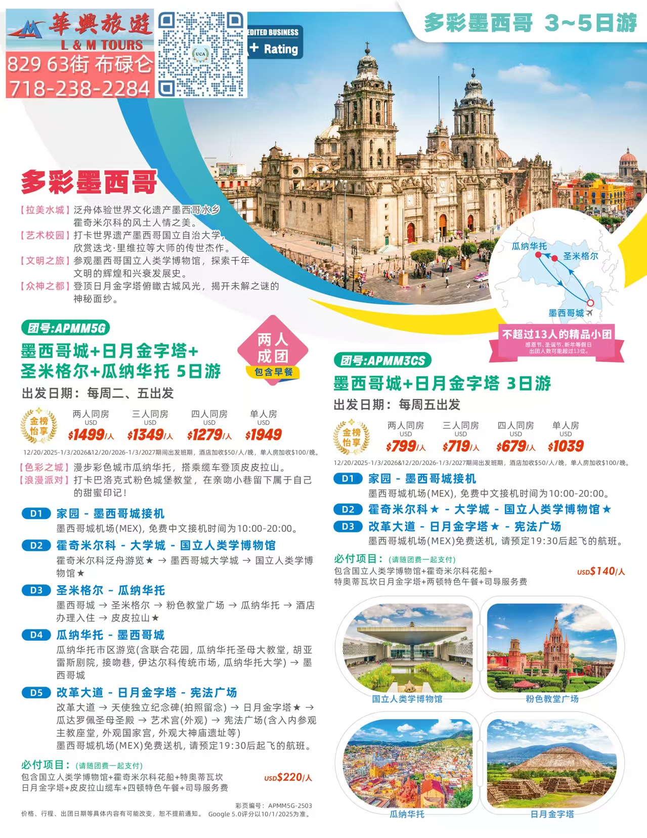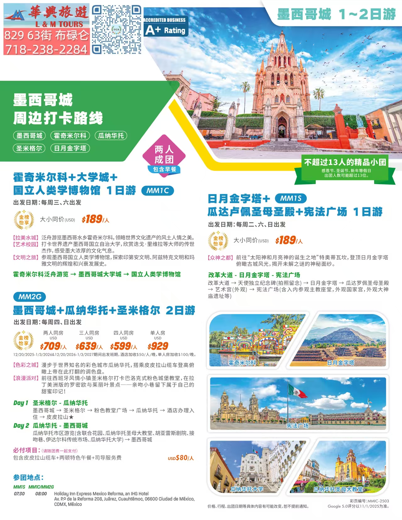 墨西哥城及周边|日月金字塔|圣米格尔|瓜纳华托|墨西哥城+坎昆