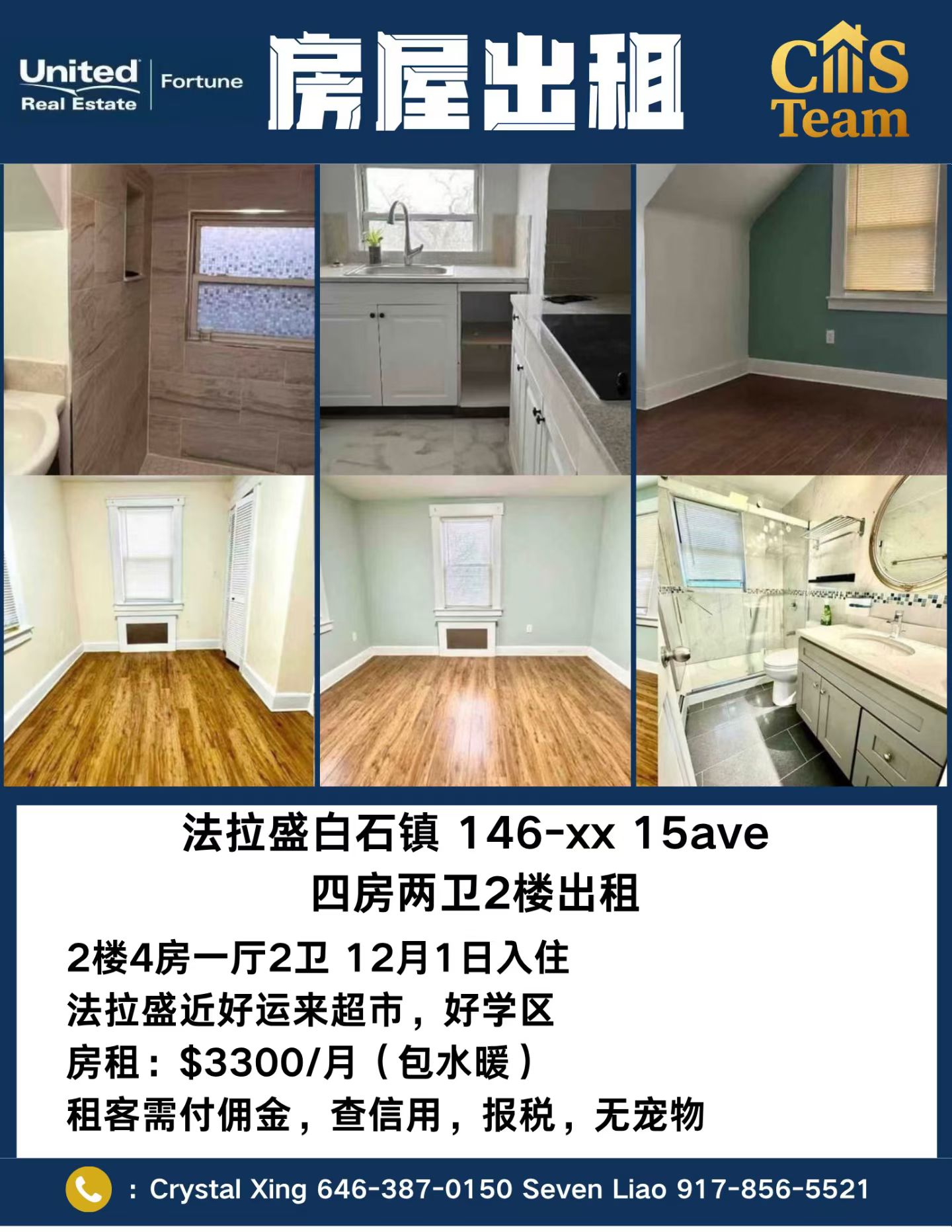 ☎️:917-856-5521(租客需付佣金)