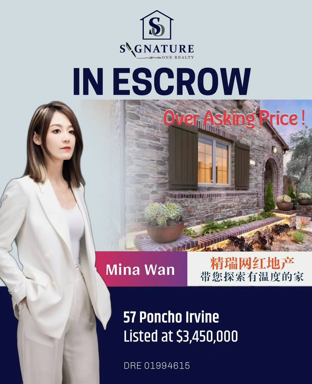 重回市场两天!Over Asking Price火速进入交易!恭喜卖家今日尔湾花果山花园洋房进入过户程序!