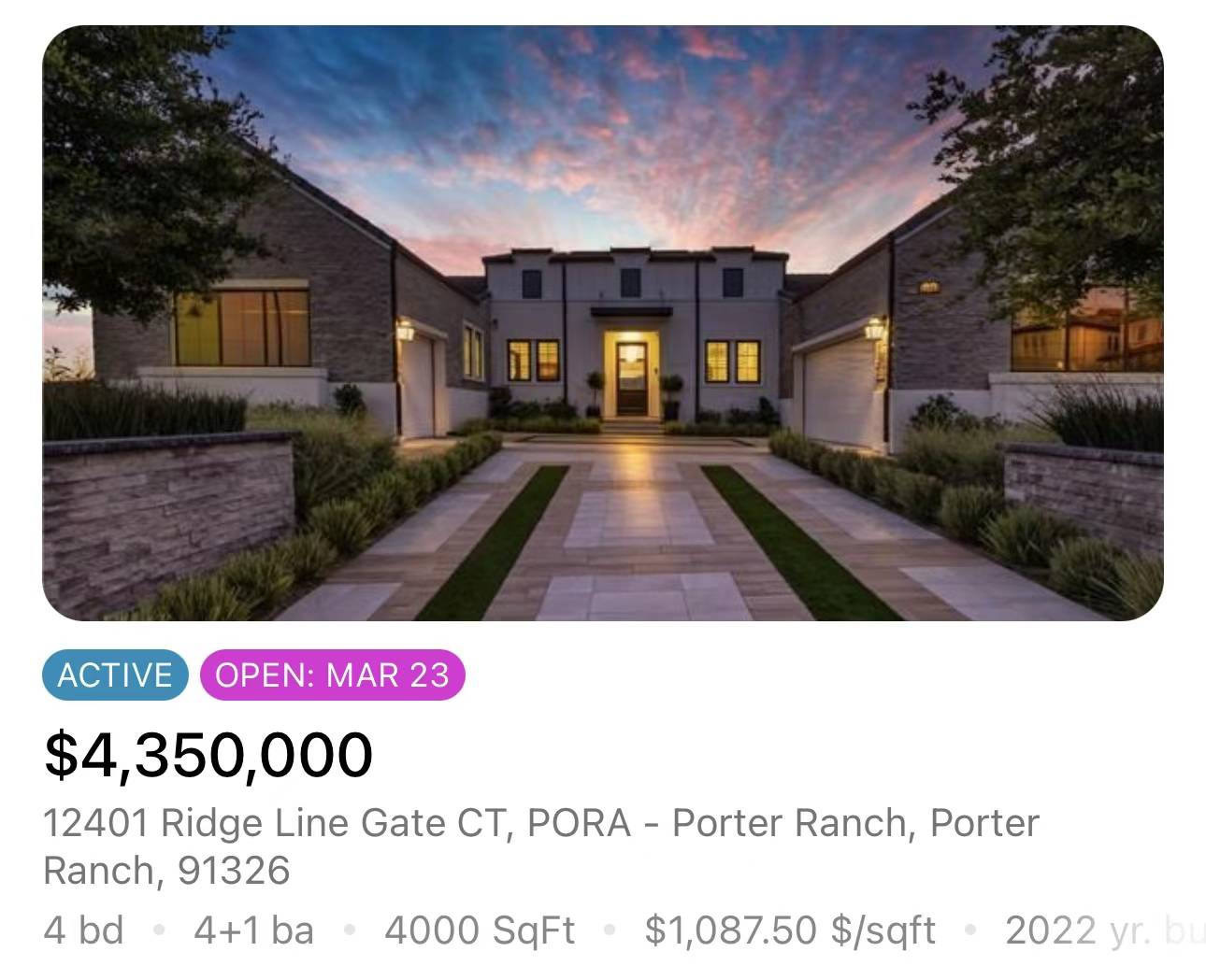 🏠洛杉矶波特山庄前托尔样板房大平层,两万尺占地山景带家具拎包入住 435W;