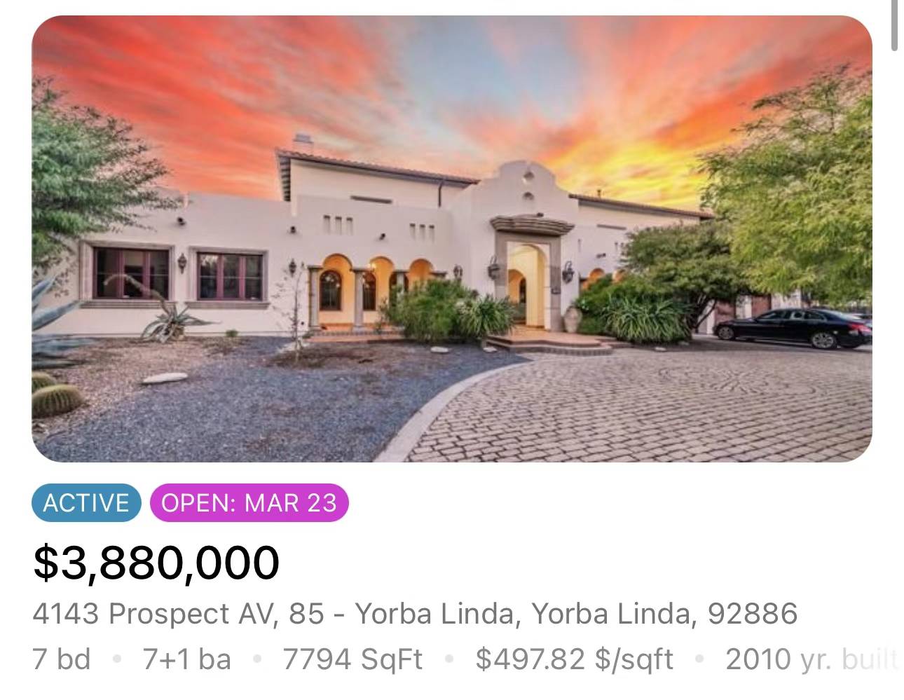 🏠橙县尼克森总统故乡Yorba Linda市西班牙风格大宅,带ADU独立屋出租房,三万五千尺占地388W;