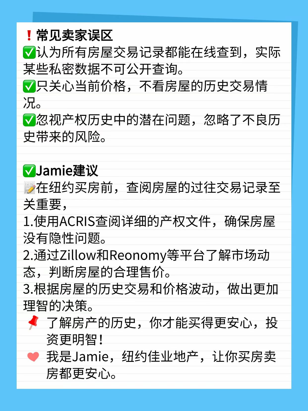 • 纽约本地专业经纪人(如佳业地产 Jamie 718-309-2982)可提供完整历史交易数据,并结合市场分析,给出买房建议。