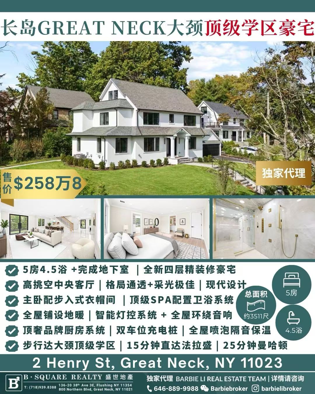 💎全新建造 🏡 Great Neck 北校区 豪华独栋四层住宅