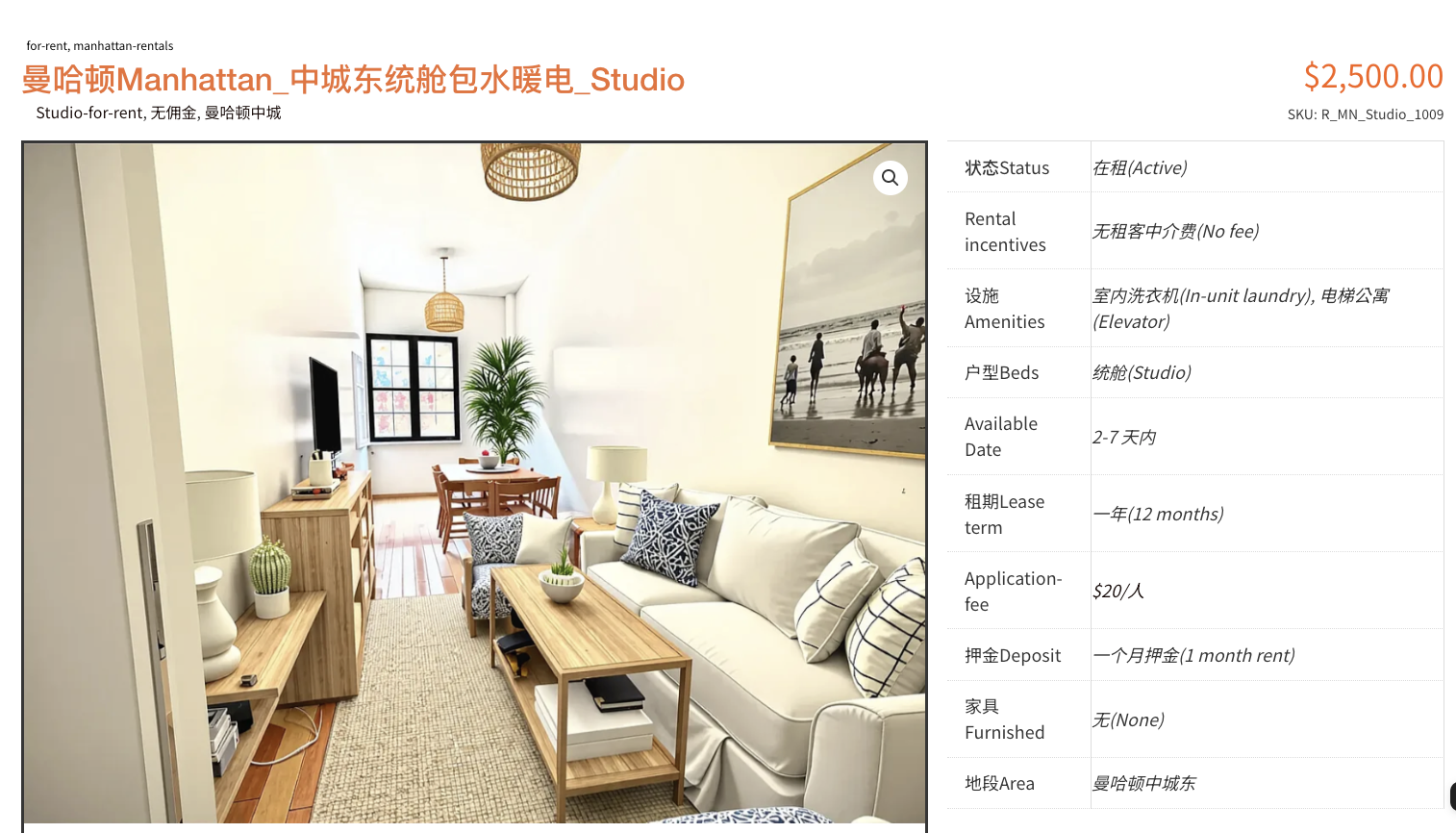 2️⃣ 曼哈顿 Manhattan – 中城东统舱:$2500/月(水暖电全包)