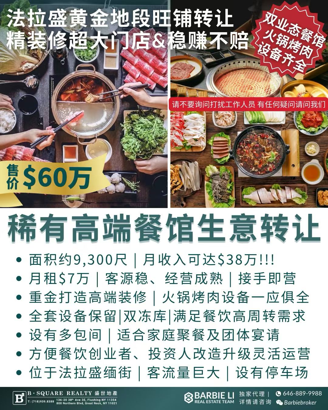 💎 优越位置,位于法拉盛缅街,客流量大,消费力强,商机无限!