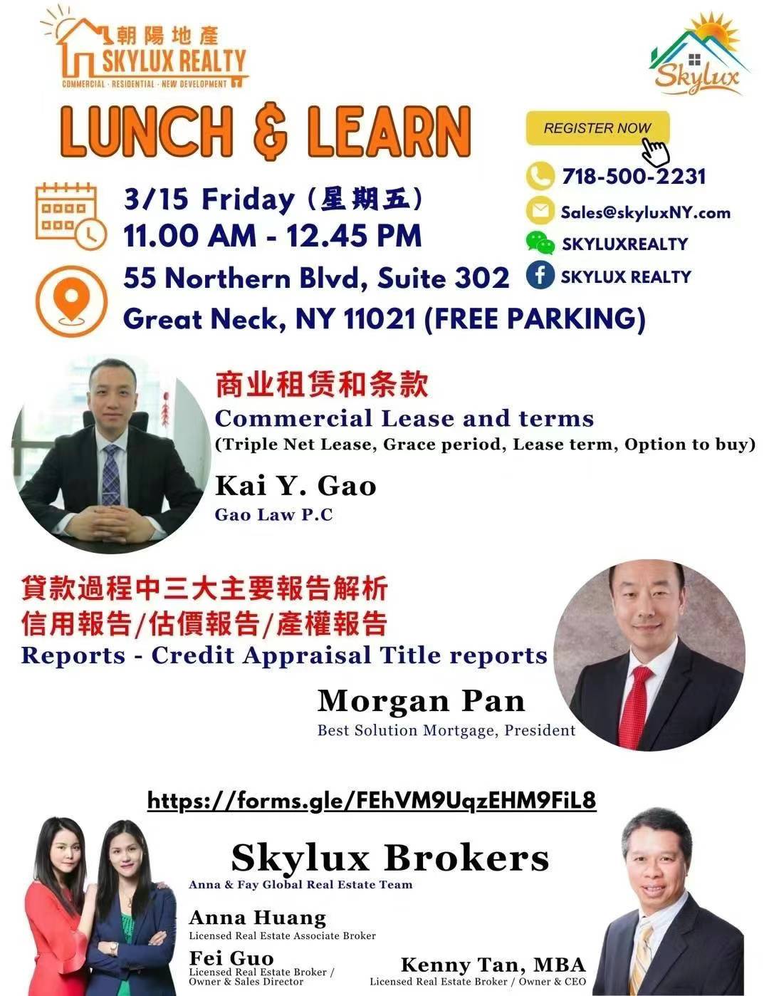 We are honored to have Attorney Kai Y. Gao and Morgan Pan as our speakers. Seats are limited, please RSVP. After class lunch and networking.