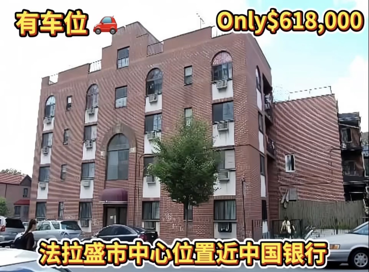 ❤️法拉盛市中心位置中国银行附近,黄金地段精装修,最佳户型朝南,两房两全浴一厅(带大阳台)有洗衣烘干机、有1个车位。实用面积近800尺。