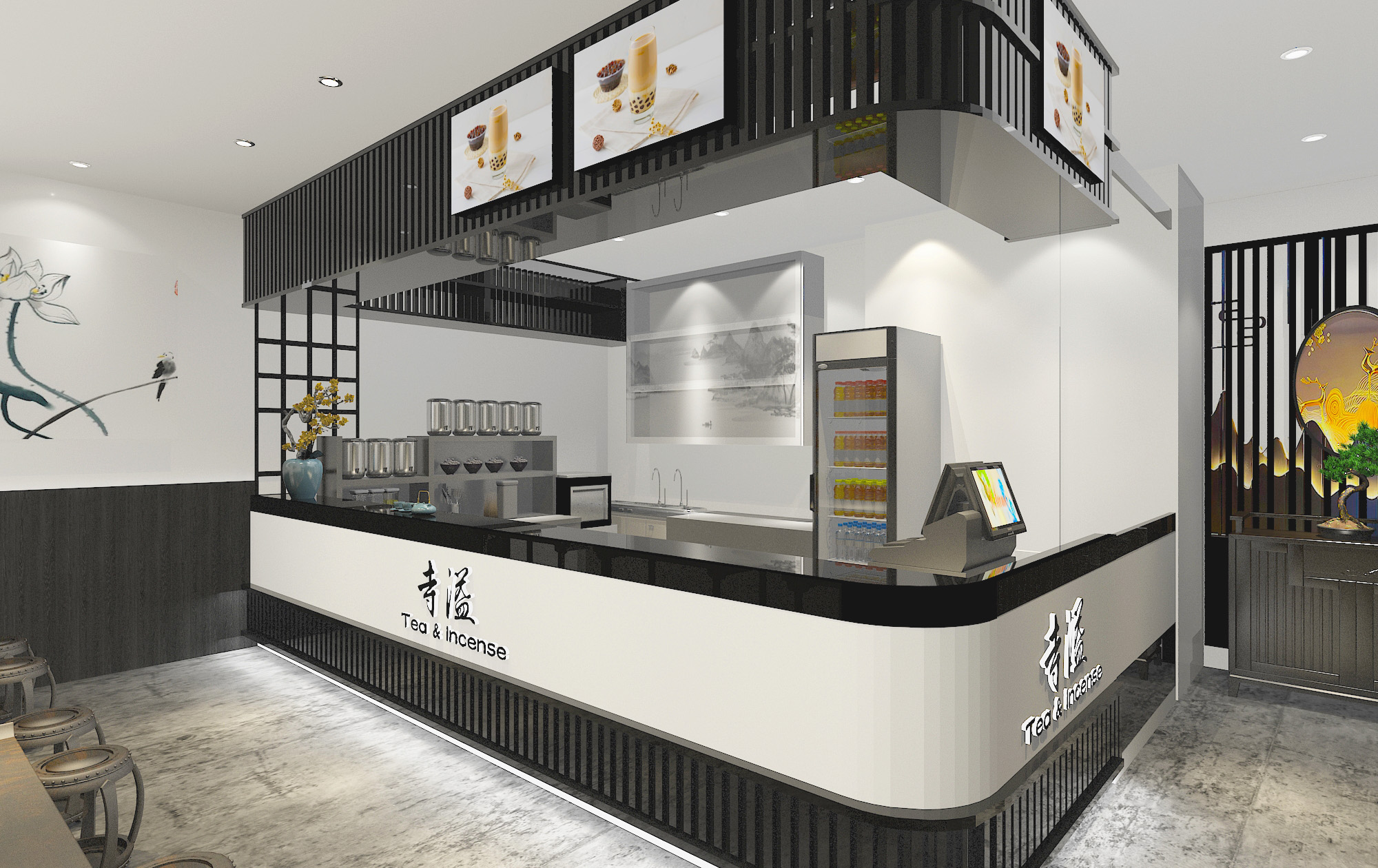 店铺精美装修,设备一应俱全,包括全套奶茶制作设备、冷藏设施、收银系统等