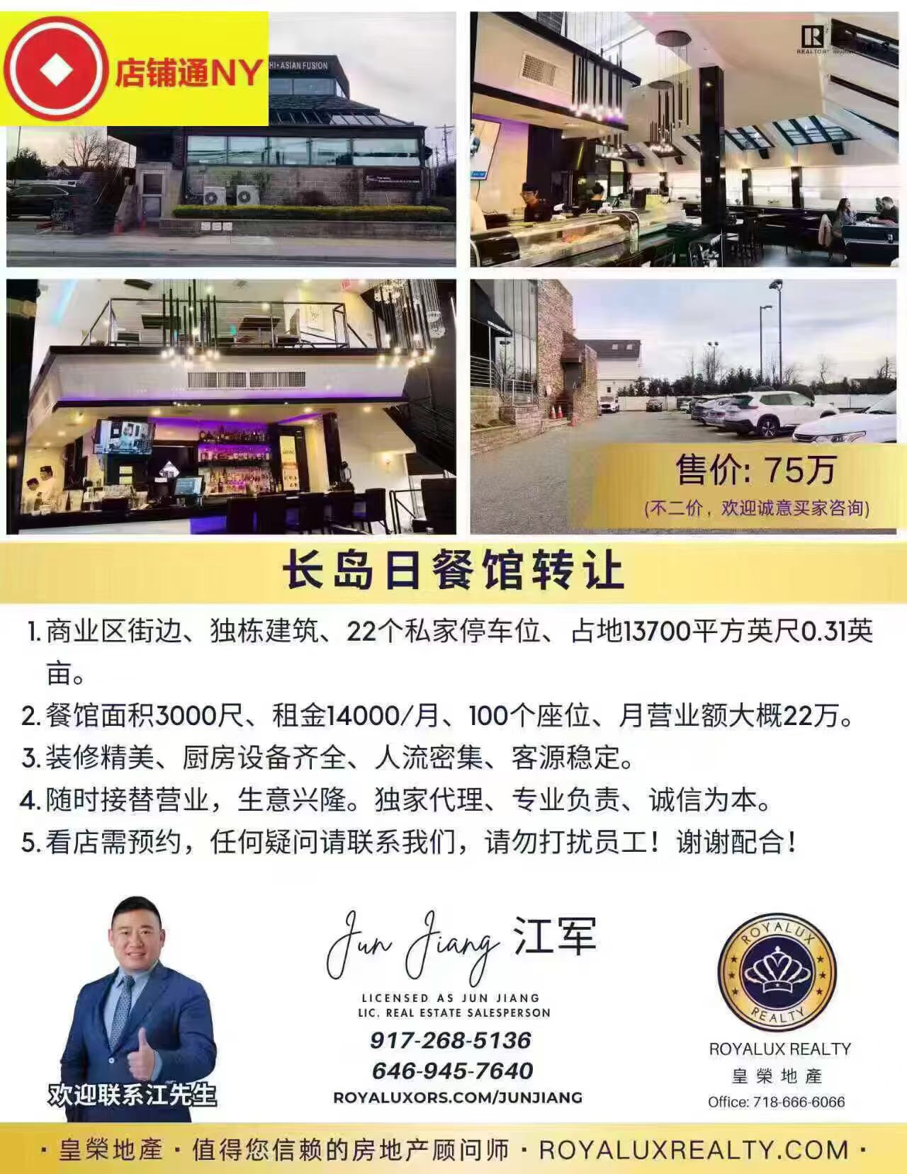 🥇曼哈顿、布朗士、长岛各类餐馆🍲转让