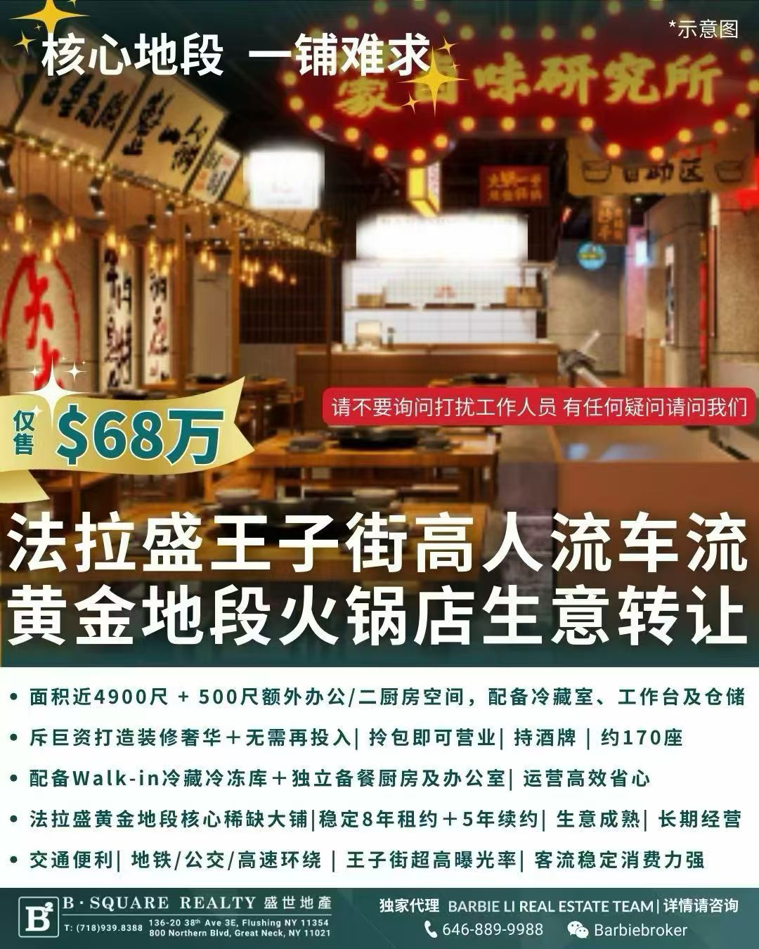 • 法拉盛黄金地段核心稀缺大铺|稳定8年租约+5年续约|生意成熟|长期经营