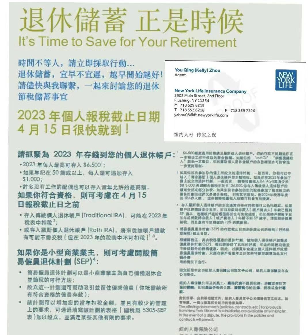 正是报税期间需要合法抵税的朋友请抓紧时间哦,截止4/15 号,这几个星期利息很好,提早给自己做好储蓄,单身一人可以抵$6500 ,夫妻$13000,需要的朋友联系我,