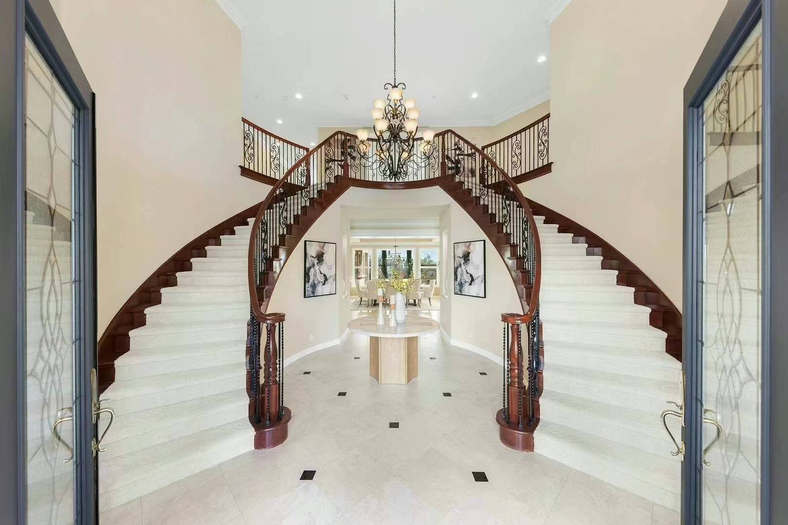 📍入门高挑空设计,双龙抱珠旋转楼梯,双楼梯设计