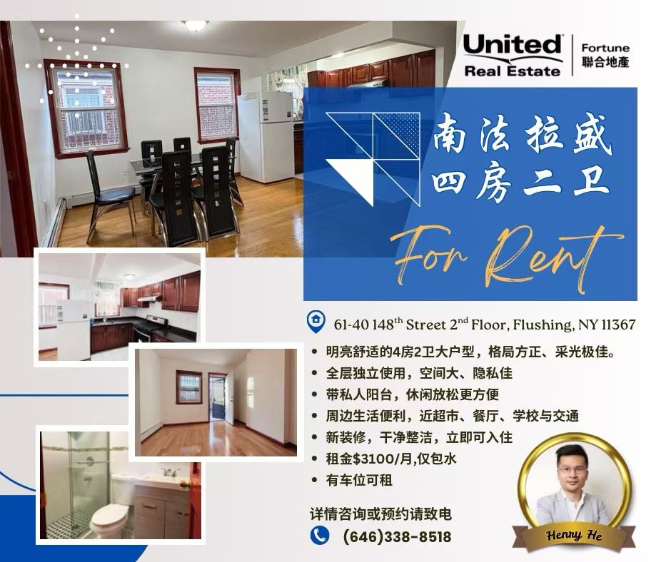 正在寻找皇后区房屋出租?无论你关注的是 法拉盛租房、Elmhurst 公寓出租,还是安静社区的大户型整层,以下由联合地产代理的多套精选房源,都具备地段好、空间大、交通便利、性价比高等核心优势,适合家庭长期居住或朋友合租。