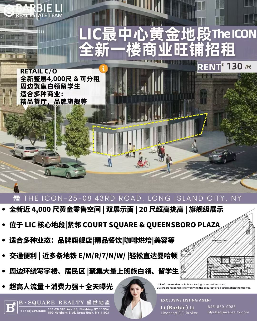 LIC最核心黄金地段 The ICON 一层近4000尺黄金旺铺招租 🎉