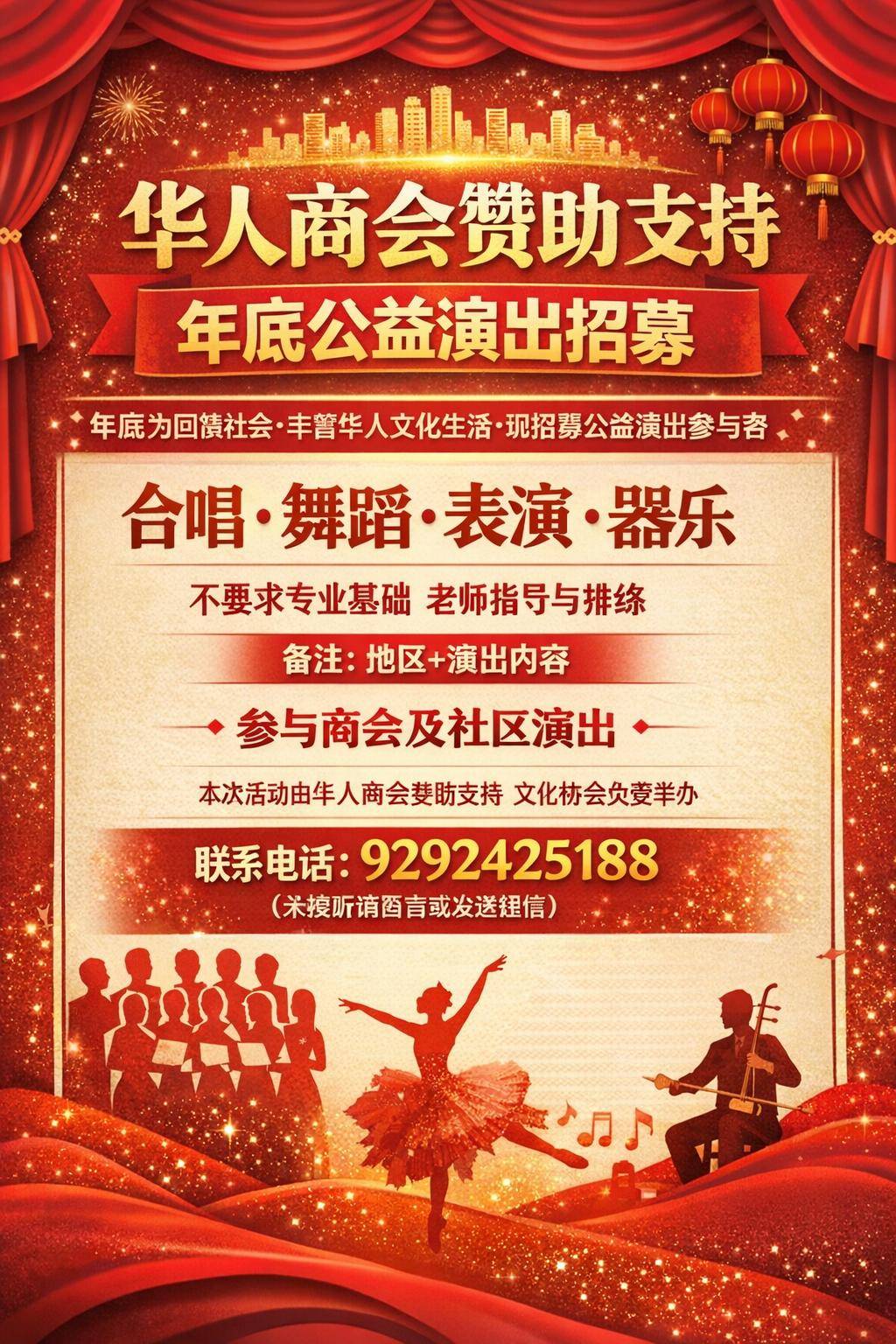 年底为回馈社会.丰富华人文化生活.现招募公益演出参与者