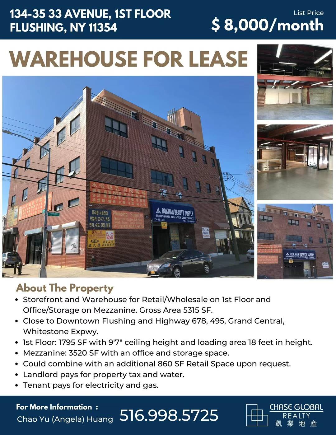 法拉盛零售/批发店面仓库出租