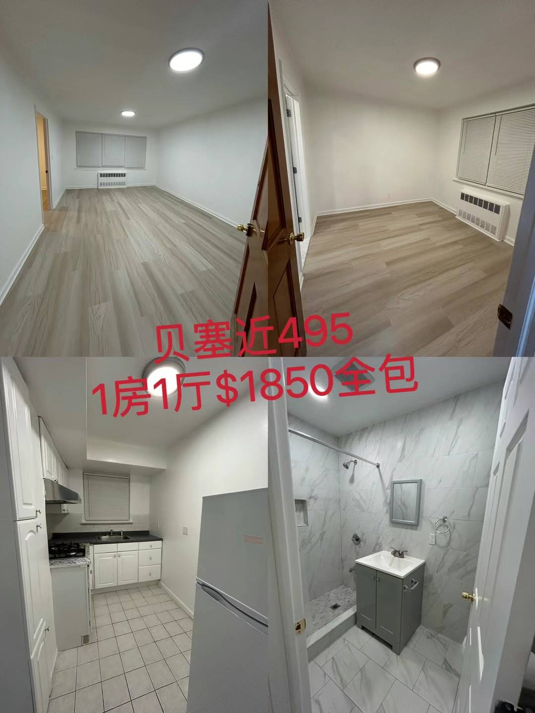 贝塞Bayside 近495高速新装修1房1厅$1850全包,近公交Q30 , Q27.,周边超级好停车,不扫街。近495和295高速,交通方便,可以小猫