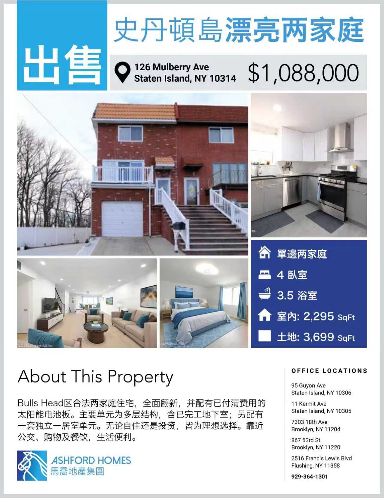 现在正是入手史丹顿岛优质房产的最佳时机,无论是自住、投资还是多代同堂,这里的单家庭与双家庭房源都能满足您的需求。房源稀缺,机会难得,抓住机会,立即联系安排看房,开启您的理想置业之旅!
