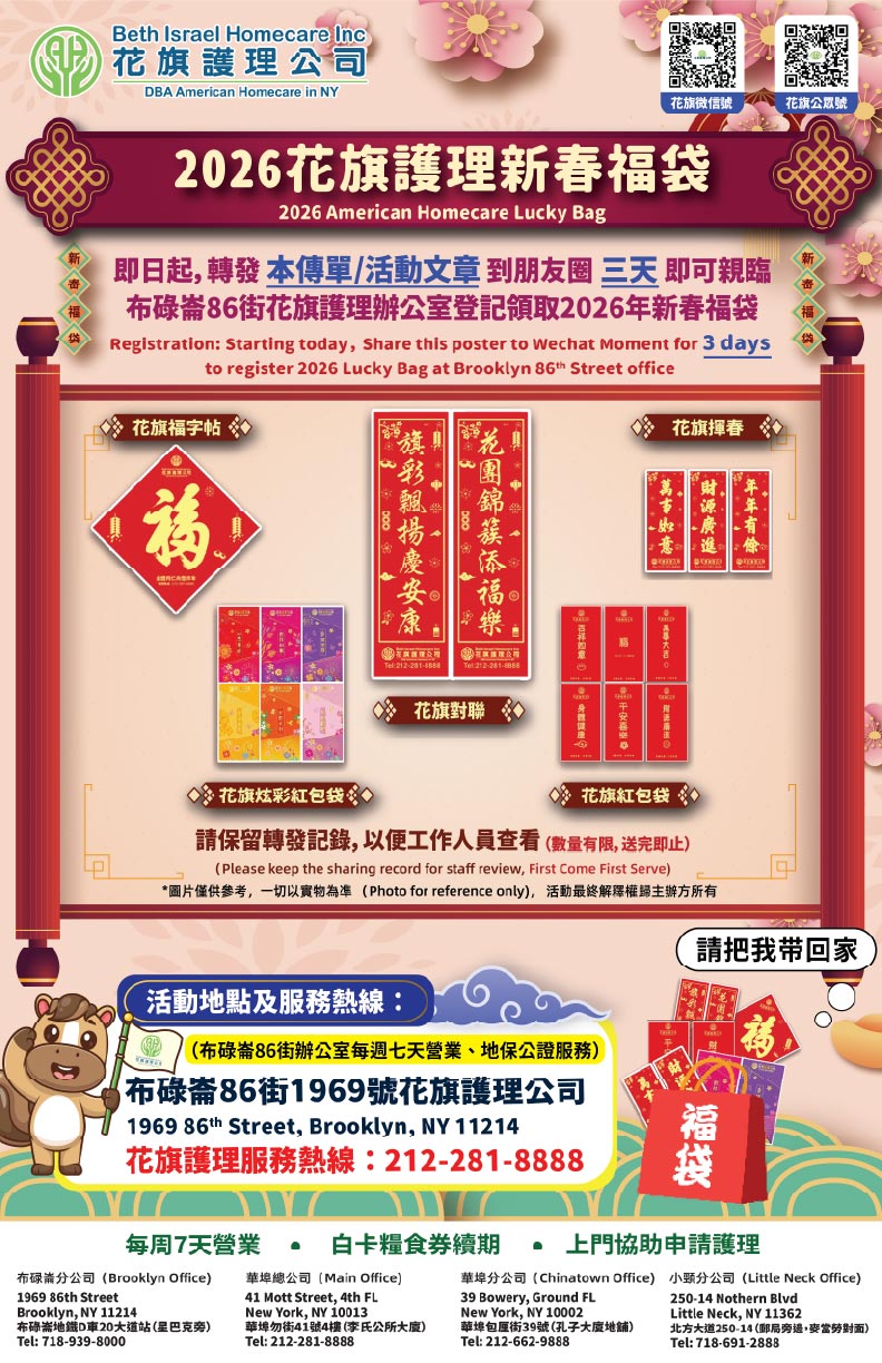 即日起,只需轉發本活動文章到你的微信朋友圈三天,即可在 2026年1月12日 起前往布碌崙86街辦公室領取2026新春福袋一份。(數量有限,送完即止)