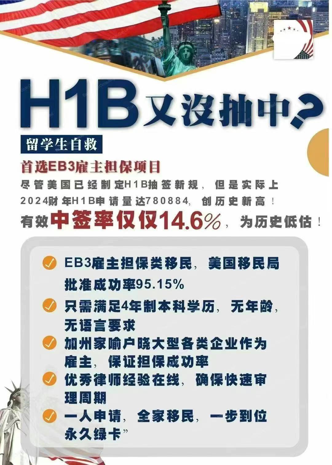 2024最新美国留学生H1B抽签结果出台🇺🇸🗽虽然今年移民局采取了一人一抽新政,但是结果依然惨不忍睹….留学生未来留在美国的自救唯一途径:申请EB3雇主担保移民