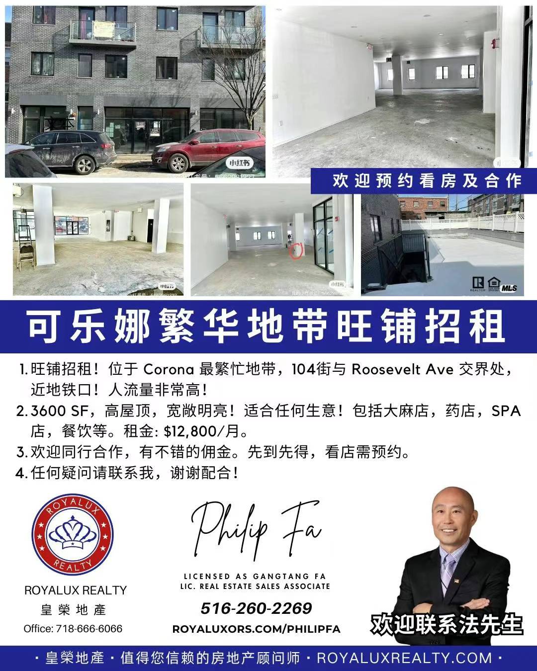 1. 旺铺招租!位于 Corona 最繁忙地带,104街与 Roosevelt Ave 交界处,近地铁口!人流量非常高!