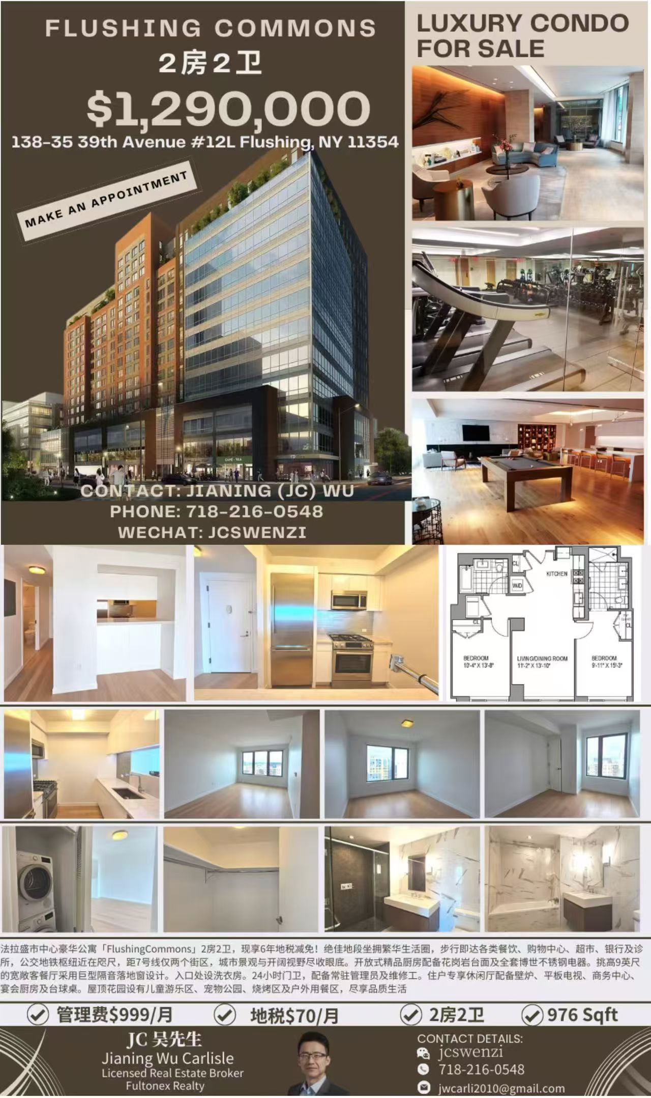 Flushing Commons 高楼层豪华公寓,交通便利、生活配套齐全、稀缺户型,投资自住双优选择,机会难得,欢迎联系安排实地看房。